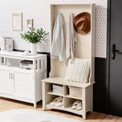 Sanit Birch Hawksbury Transitional Black Hall Tree & Shoe Bench
