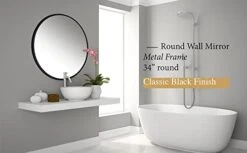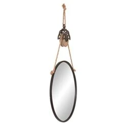 Patton Wall Decor 24″ Round Metal Wall Mirror With Hanging Rope And Antique Pully,Black