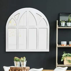 Patton Wall Decor 28 Inch Distressed White Farmhouse Cathedral Windowpane Wall Mirror