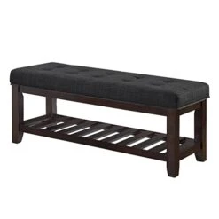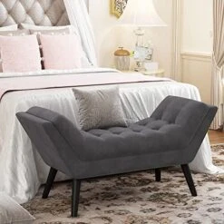 Andeworld Bed Bench Upholstered Tufted Footstool Entryway Ottoman Bench Two Seaters (Dark Gray)