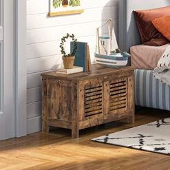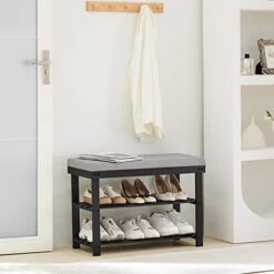 AVAFORT Shoe Bench With Storage Cabinet Top Seat, Metal Frame, Rustic Brown