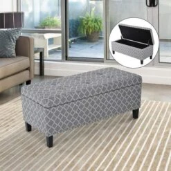 Homelegance Lift Top Storage Bench With Tufted Accents, Beige Fabric