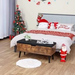 Signature Design By Ashley North Shore Ornate Faux Leather Upholstered Bedroom Bench, Dark Brown