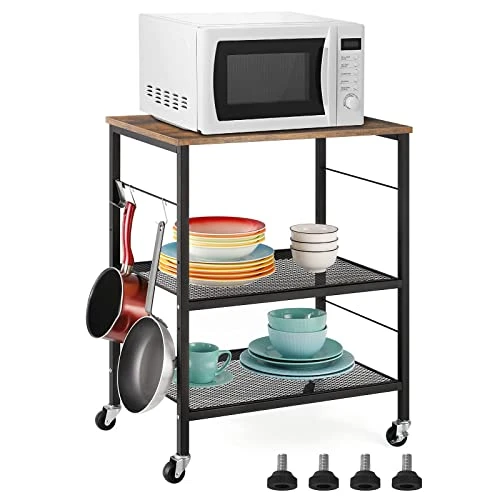 - 【VERSATILE END TABLE】The sturdy top shelf of bakers rack can hold microwave ovens and other heavy items. The second and third shelves can store toasters, printers, tableware, living room and bathroom supplies, etc. Provide extra space for home, office, living room, bedroom, bathroom.