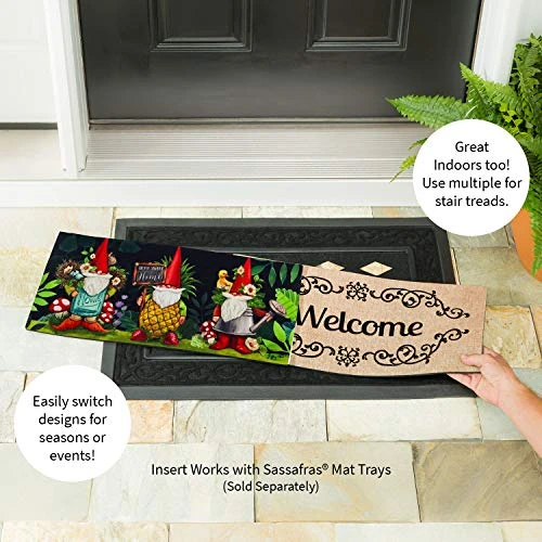 - With so many charming designs to choose from, you are sure to find the perfect unique housewarming gift for new neighbors or friends. Each Sassafras mat measures approximately 22 inches x 10 inches.