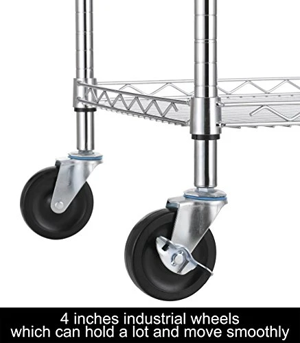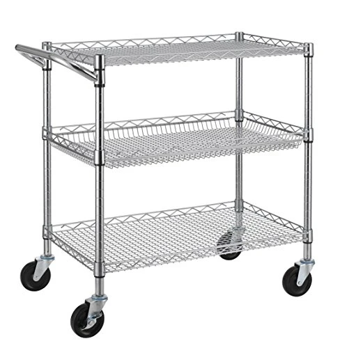 Finnhomy 3 Tier Heavy Duty Commercial Grade Utility Cart, Wire Rolling Cart With Handle Bar, Steel Service Cart With Wheels, Utility Shelf Plant Display Shelf Food Storage Trolley, NSF Listed