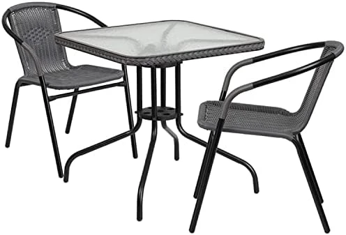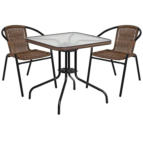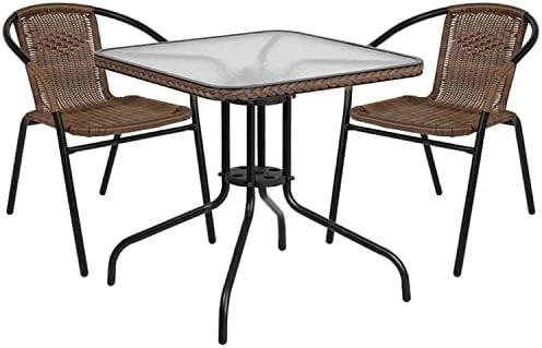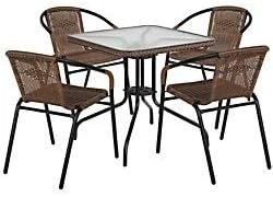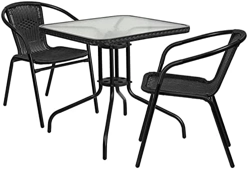 - Square table with 5mm thick glass, clear tempered glass surface, 1.375″ edge top with decorative rattan edge band