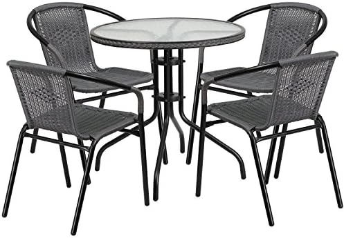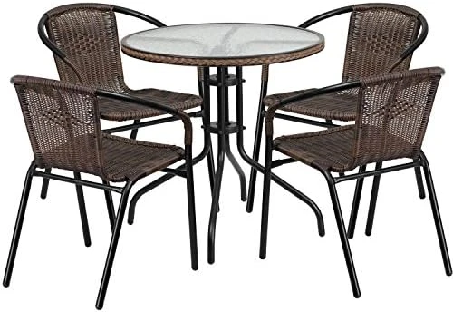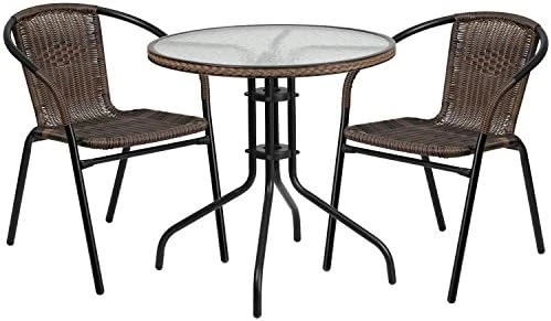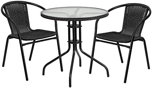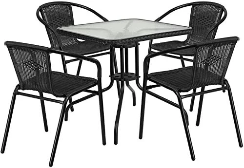 - PRODUCT MEASUREMENTS: Table Size: 28″W x 28″D x 28″H; Base Size: 25.5″W; Chair Size: 21.75″W x 23.5″D x 28.5″H; Back Size: 11.5″W x 13.5″H; Seat Size: 16.5″W x 15″D x 17″H