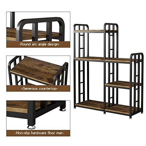 - [ High Quality & Sturdy ]- kitchen racks and shelves for storage is crafted from thick P2 particle board and strong metal frame, which ensures the sturdy and durable and long service life of the microwave stand. The surface is water-resistance and easy to clean. The adjustable 4 leg pads can be used in uneven ground to prevent scratches