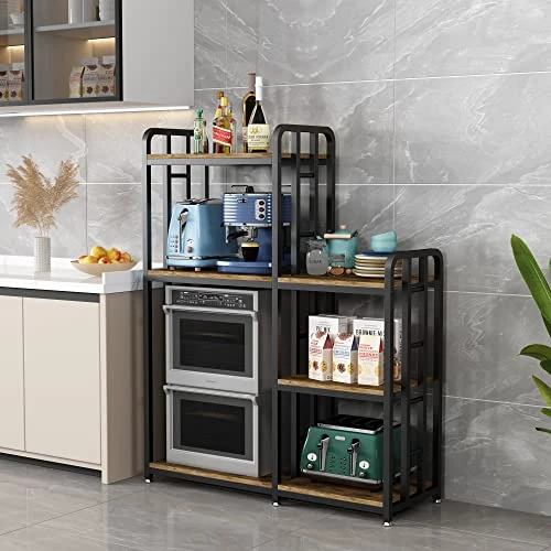 - [ Compact& Functional ] -6-Tier shelves bakers rack design makes it ideal used as kitchen storage shelf, Microwave Stand, bakers racks for kitchens with storage, Spice Rack Organizer, Kitchen Workstation Shelf, coffee bar stand. pans or whisk. This kitchen organization can blend with a variety of styles, especially rustic barn-style and industrial design