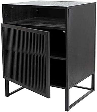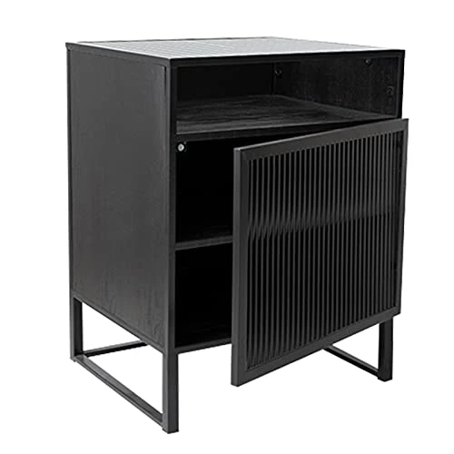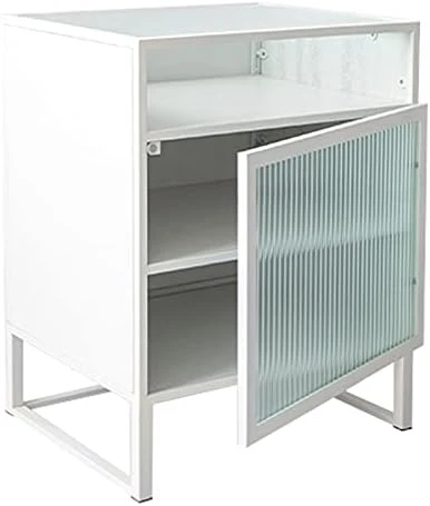 - 【Spacious Storage】This Bedside Table Has 3 Storage Spaces, One of Which is Open, and the Other 2 Are Blocked by Glass Doors That Can Be Pulled on the Left or Right.