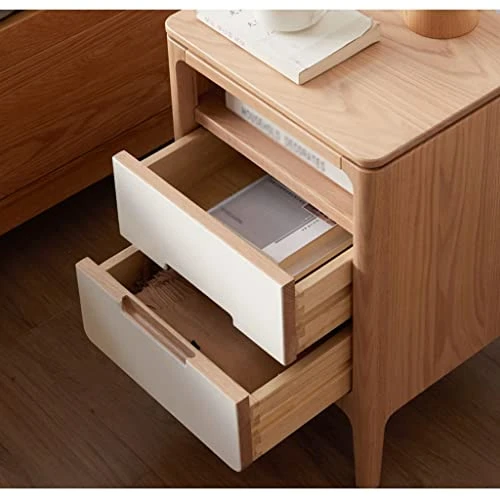 - This is a perfect height bedside table with two drawers to better store your belongings.