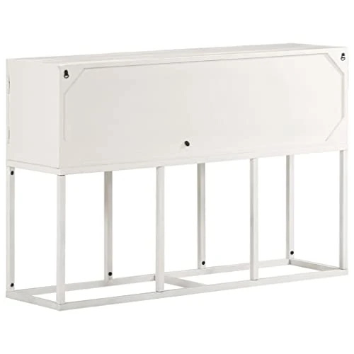 - Material Info: Solid mango wood, powder-coated iron. Assembly required: Yes. WARNING: In order to prevent overturning, this product must be used with the wall attachment device provided. Design/Look : Modern & Contemporary. Material : Wood. Finish : Wood Finish. Assembly : Assembly Required. Color : White. Storage type : Cabinets. Product Size: 1.0 In. W X 1.0 In. H X 1.0 In