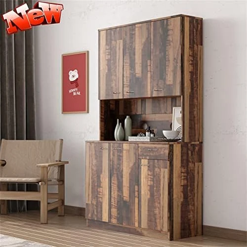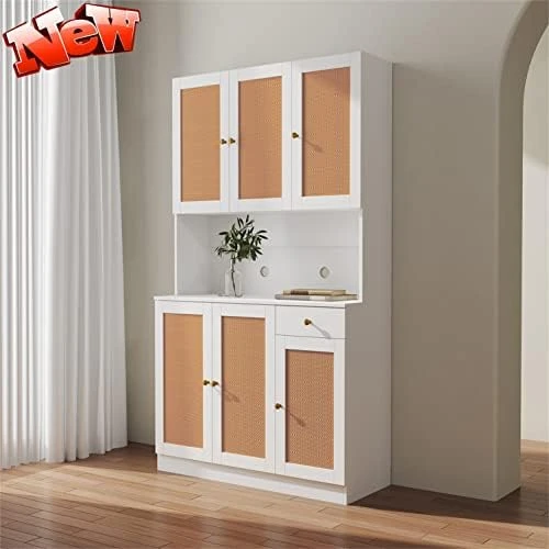 - Spacious storage space: Kitchen pantry features 6 cupboards, a pull-out drawer, and 3 adjustable shelves to meet your daily storage needs, making your room tidy. Adjustable shelves can be adjusted in height according to needs. There has an open countertop for the microwave oven, coffee maker, toaster, and other utensils.