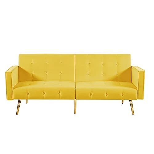 - Products: Velvet sofa bed. Upholstery Material Info: Velvet. Leg Material / Color: Metal /Gold. Seat & Back Fill Material Info: Foam. Seat Construction: Sinuous Spring and foam. Assembly Required: Yes. Products Product Size: Sofa Size : 76.”W * 33″D * 30.7″H. Sofa bed Size : 76.”W*39.8″D*16.15‘’H. Seat Height :16.15″. Arm Height: 24″. Leg Height: 9″. Weight Capacity: 500 LBS. Design/Look : Casual, Lake House. Material : Velvet. Print : Solid. Assembly : Assembly Required