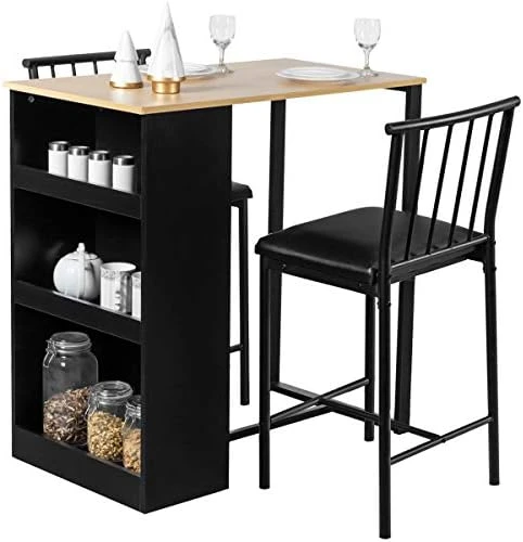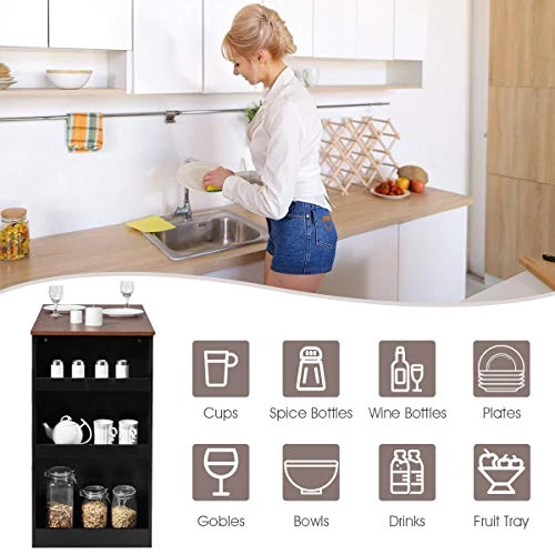 - 🍴Spacious Tabletop and Ample Storage: The wide tabletop provides ample space for dining or working, while the 3 deep storage shelves on the side offer plenty of storage options for dinnerware, cookbooks, and other kitchen essentials.