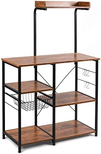- 〖Fine Craftsmanship〗: Manufactured with P2 standard MDF with melamine cover and PVC margin-wrapping device, this microwave rack with steel tube supporting can hold up to 129lbs.It is a great choice to be your Microwave Stand, Baker’s Rack, kitchen island, Spice Rack Organizer and kitchen storage shelf.