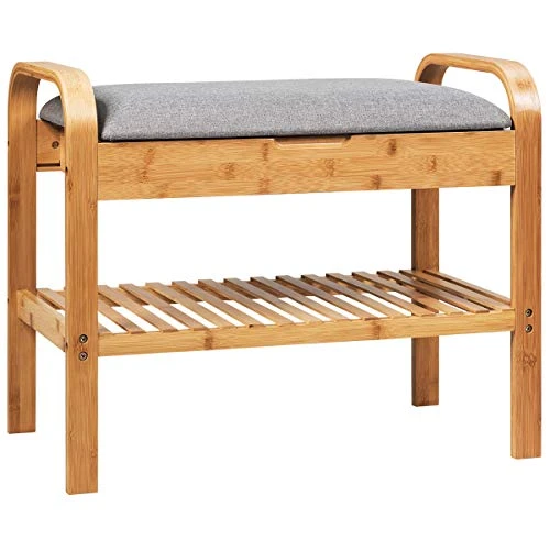 - 【Shoe Rack Bench with Soft Cushion】: The cushioned seat is filled with high-density sponge, which has good elasticity for sitting to change shoes. And covered with breathable grey linen, the seat is comfortable to sit together and will not show the dirt.
