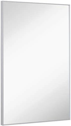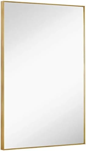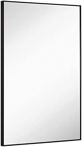 - SAFE AND EASY TO INSTALL: Our glass is safely custom mounted and protected by the surrounding frame construction. The mirror is recessed into the frame and encased by the metal frame construction. The bathroom vanity mirror comes with dual orientation hanging hardware as well as the wall hardware and screws to easily hang the mirror on walls in a bathroom, entry way or over a table. The vanity mirror hangs both horizontally or vertically (landscape or portrait).