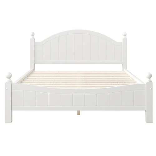 - 【Queen Bed Frame with Curved Headboard】This white queen size platform bed with headboard and footboard, cozy and versatile, whether for a spare room or for cozying to a good book on a rainy day,this white bed frame queen is the perfect piece to complement your home.what’s more ,the vertical stripes at the head and end of the bed enhance the beauty but also reflect the delicacy and care in the production process.