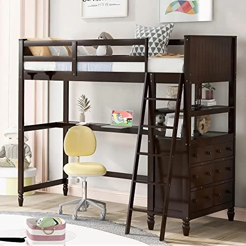 - 【Modern Style】Wood teen loft bed not only a sleeping area but also stylish and sophisticated Aesthetic furniture. At the same time, the simple design allows the loft bed with storages to be matched with a variety of home decorations. When there is small bedroom then a twin loft bed with desk could be just right