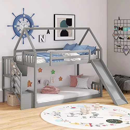 - [Safety Guaranteed] With guardrails, a ladder and a sturdy pine frame, this bunk bed offers a safe space for your kids to get a good night¡¯s sleep.