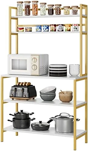 - CRAFTED TO LAST: Made of high-grade MDF wood and premium metal frame, the kitchen baker’s rack features incredible durability as well as long-lasting sturdiness. With the additional support from metal rods, each bottom shelf holds up to 66 lbs