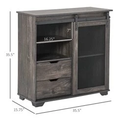 - Coffee Bar Cabinet Dimensions: 31.5″ L x 11’W x 33″ H. Weight Capacity: 66lbs