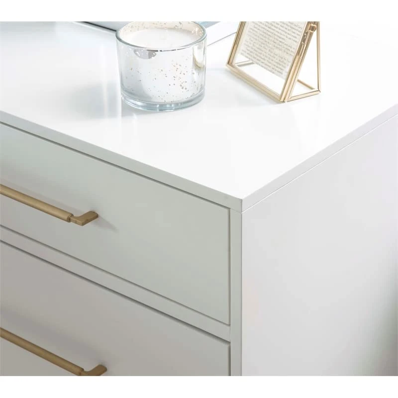 - Gloss white painted finish accents clean contemporary styling
