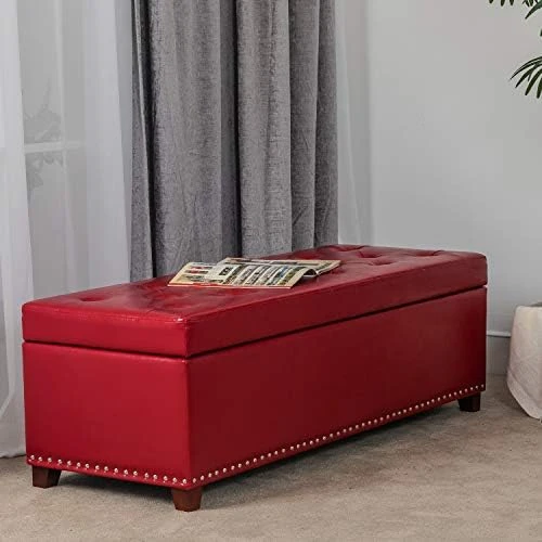 - ❀【Stable Construction & Safety Guaranteed】❀ Crafted with sturdy & distortion-free frame as well as wood finished legs, which ensure our rectangular ottoman bench easily seats 2-3 adults. Moreover, the exquisite child-safety hinge prevents lid from slamming shut on fingers