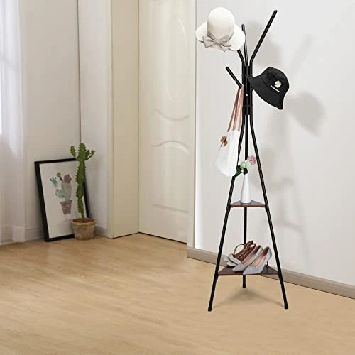 - Good stability: The design of the three-bar support is stable and does not shake, and the triangular shelf greatly increases the stability of the coat rack. Each hook can carry up to 12 pounds, and each shelf can carry 20 pounds.