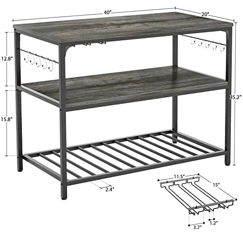 - Spacious Storage Space: The spacious countertop works as an ideal prep or workstation, while the 3 open shelves ensure everything has storage space. Convenient and accessible way to display your microwave, toaster, air fryer, blender, coffee maker and other small appliances. 3 rows of glass holders organize your home stemware collection.