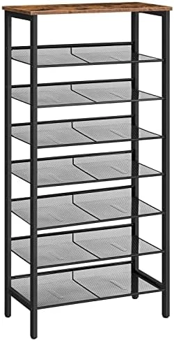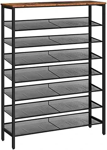 - All-metal Shelves: The large-capacity shoe organizer is constructed with high-quality particleboard and metal mesh shelves, providing long-lasting performance and strength even though heavy items are put on. The top plate supports up to 66 lb and the shelf supports up to 44 lb. No aging, no bowing is exactly what you expect