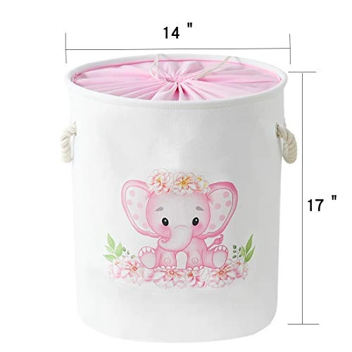 - Eco-friendly &Premium Material: This fabric storage basket is made of durable linen & waterproof EVA which is water resistant.It is also easy to clean, just wipe with a damp sponge or cloth.The sturdy metal rod frame around the top and sturdy bottom keep the basket shape after each use.Package Content: 1 x Pink Elephant Basket L(16″ x 12.2″ x 8.3″), 1 x Pink Elephant Hamper(17″H x 14″D)