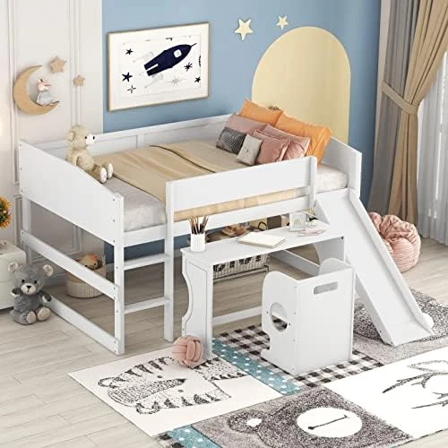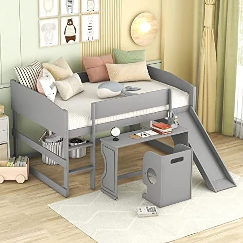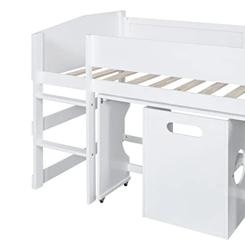 - [Ample Storage Space] This multifunctional loft bed with a desk is specifically designed to maximize the use of limited space. The freestanding desk on castors can be pulled out or pushed in as needed, creating ample storage and work area that’s perfect for small rooms or apartments.