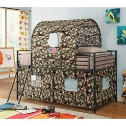 BOWERY HILL Camouflage Loft Bed With Tent Cover In Army Green