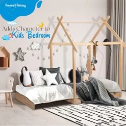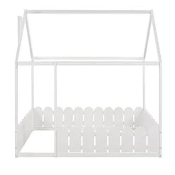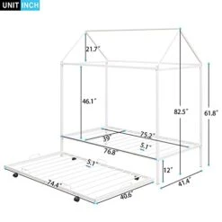 Epinki Twin Size Kids House Bed With Trundle, Metal House Bed White, Easy Assembly