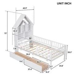 Twin Full Or Queen House Bed With Railings Handmade In The USA