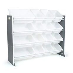 Humble Crew Kids Toy Organizer With 16 Storage Bins, Grey/White