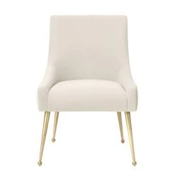 MEXIYA Irina Dining Chair Beige Easy Clean Velvet Upholstered Side Chair With Brushed Gold Leg