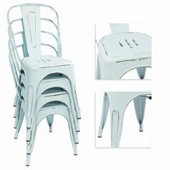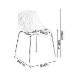 CangLong Modern Mid Century Plastic Shell Hollow Matal Legs Dining Chairs, 4 PCs Pack-Light, White 1