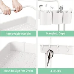 3-Tier Rolling Utility Cart With Caster Wheels,Easy Assembly, For Kitchen, Bathroom (White)