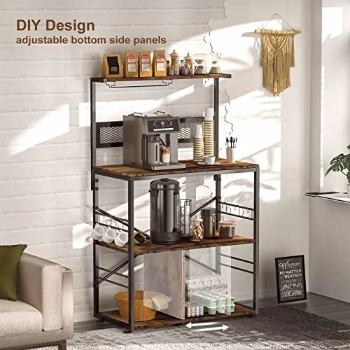 - 【Both Microwave Stand and Coffee Bar】Still upset with the limited storage? Look! Not only a kitchen microwave stand can also hold your decanters, coffee machines, pots and pans, crock pot, mugs, and more! No problem creating a practical and modern sense of fashion