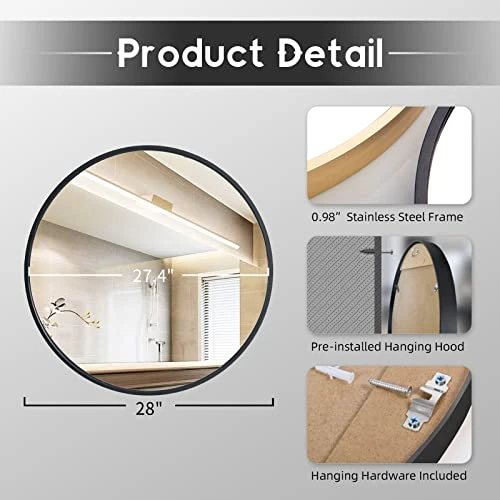 - Metal Frame: Black decorative aluminum frameworks as a protective bumper. Modern Nordic style can add beauty to your room, it reflects enough light, brighten and open up your space. The beautiful circle wall mirror can be used as a bright decoration for your bathroom, dressing room, bedroom, vanity, house entryway, etc.