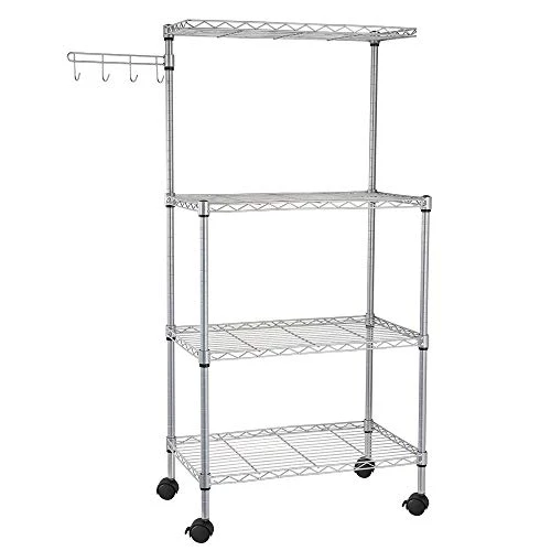 What we are highly recommended to you today is this 4 Tier Kitchen Bakers Rack Microwave Oven Stand Storage Cart Workstation Shelf! Adopting premium carbon steel material and with the fine workmanship, it ensures durable use and stylish appearance. It not only is a microwave oven rack, but also can be used as a storage rack to store other items. 4-tier design helps to well organize your messy gadgets while saving space. Mesh design can protect objects from falling. And it has strong anti-rust performance. So don’t hesitate, just buy it!