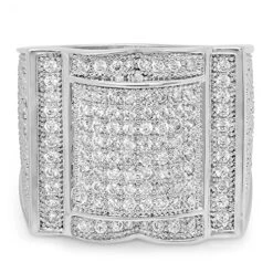 The Bling Factory Rhodium Plated Micro-Pave Iced Out Cubic Zirconia Hip Hop Ring + Microfiber Cloth