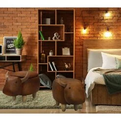 Christopher Knight Home Kamla Furry Yak Ottoman, White, Natural Finish