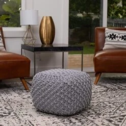 Christopher Knight Home Joyce Knitted Cotton Square Pouf, Dark Grey