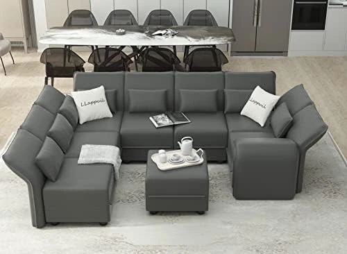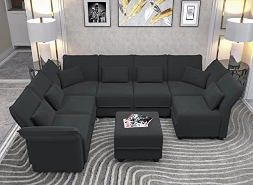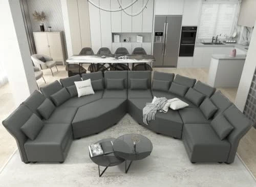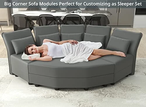 - 【Extra Large Storage Seats】The sectional modular couch has large enough invisible storage space under each seat for classification storage blankets, pillows, children’s toys, game consoles, magazines, tools, etc. Make sure your home is clean and tidy. Square ottoman storage size: 20.67*20.67*6.30 in; Hexagonal corner ottoman storage size: 45.3*20.1*6.70 in. In addition, the 6 side corner ottoman can be used as a sleeper sofa bed.