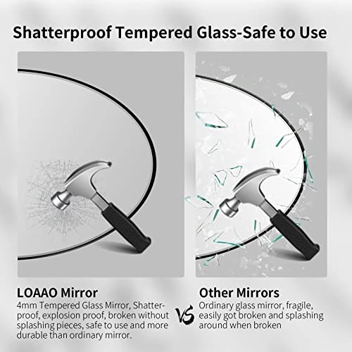 - 【Anti-Rust & Shatter-Proof】: LOAAO oval bathroom vanity mirror made of tempered glass , aluminium alloy frame, features shatter-resistant, burst proof, anti rust, moisture proof. Rated for using in humid environment like bathroom. Sturdy and durable.